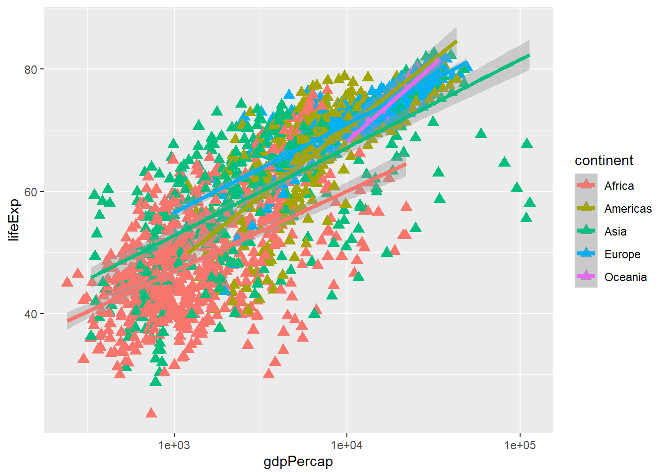 geom_point(size=3, shape=17) + scale_x_log10() +